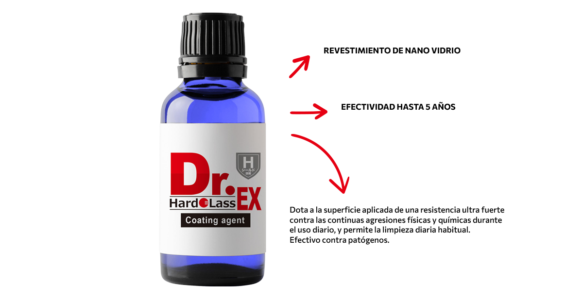 Es un agente de recubrimiento de nano vidrio de alta pureza, desarrollado y fabricado en Japón, bajo patente internacional. Desactiva los virus y las bacterias que provocan las infecciones cuando estos entran en contacto con el revestimiento.